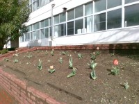 今週の2年生体育は持久走です。先週の1年生に負けず2年生も全力を出して走っている姿は立派です!木化石の近くのチューリップが咲き始めました。入学式には満開かな?林間の桜は先週からの温かさで満開です。昇降...