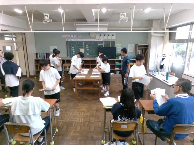 新1年生に配布する、4種類のプリントを丁合する作業をしました。