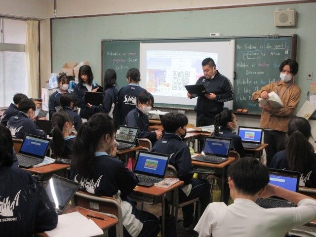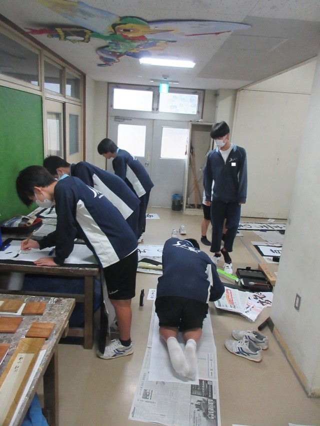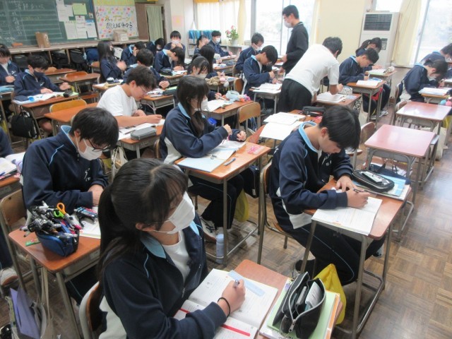英語の授業では、『Popular snack』の投票をしたり、数学では、コンパスを使って作図したり、国語では、条幅紙で書ける場所で席書会の練習をしたり、授業に積極的に臨んでしていました。