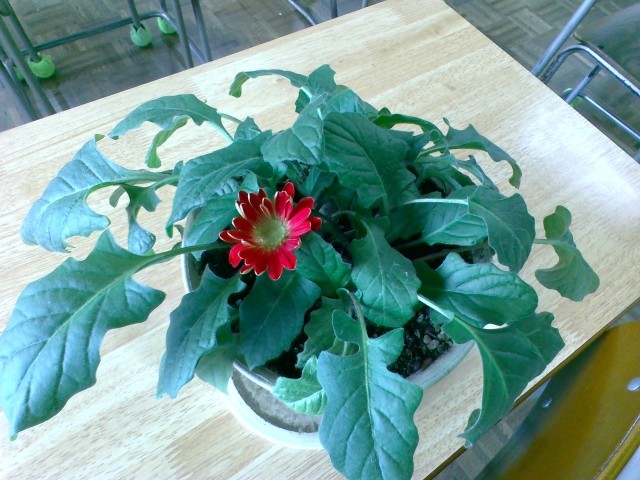 去年の入学式のガーベラ。3回目の花が咲きました。