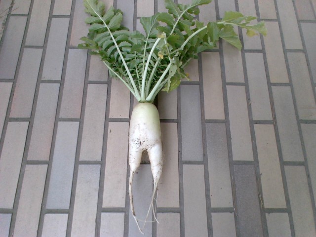 畑で最後の大根、今年初の2本足でした。