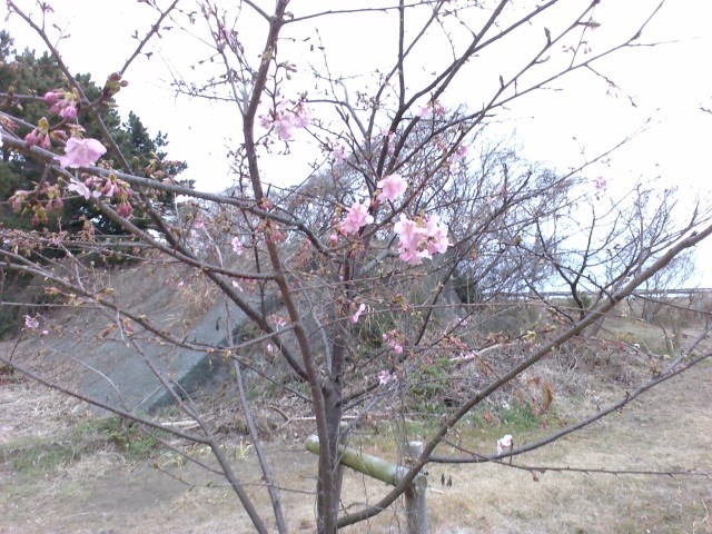 最高気温が5℃寒い中、桜の花が咲いていました。