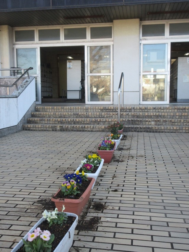 この寒さで、霜げてしまった昇降口の花を、さかわ級の生徒が植え替えてくれました。昇降口の明かるさがよみがえりました。ありがとう。