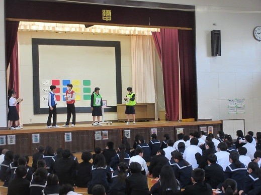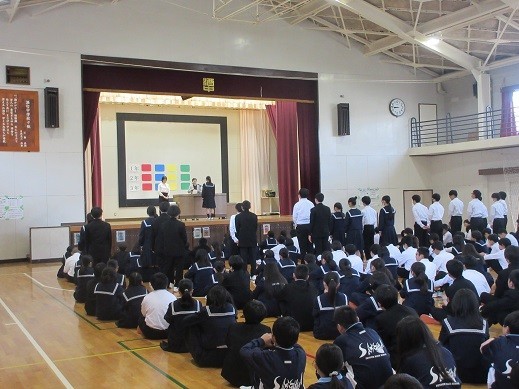生徒会本部役員と各クラス各種委員会の委嘱式がおこなわれました。