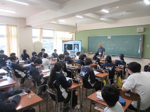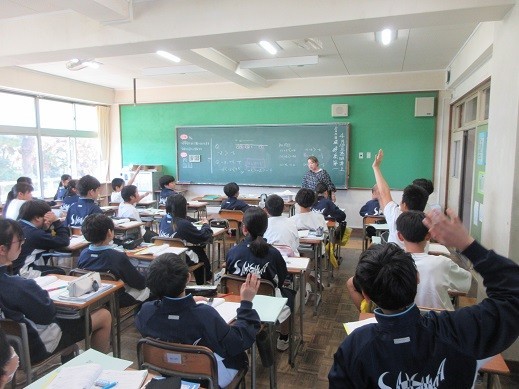 本日から新しくALTの先生も来ていただいています。2年生の授業では、英語でALTに質問していました。