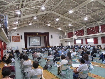 本日6校時に、3年生徒、保護者対象の修学旅行説明会を実施しました。