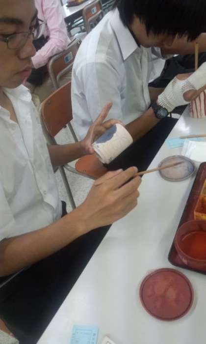 嵐山からバスで移動して、清水道にある森陶器館に来ました。湯のみに絵つけして清水焼の制作です。作品は焼き終わると学校に送られてきます。松風祭で展示されます。焼き上がりが楽しみですね。