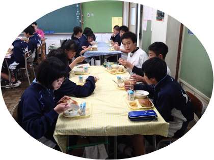 1年3組の給食におじゃましました。配膳前には、当番以外の生徒が読書をしている姿が多く見られました。落ち着きを感じます。このクラスでは教育実習の田村先生が一緒に勉強しています。田村先生久しぶりの給食はいかがですか。