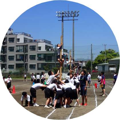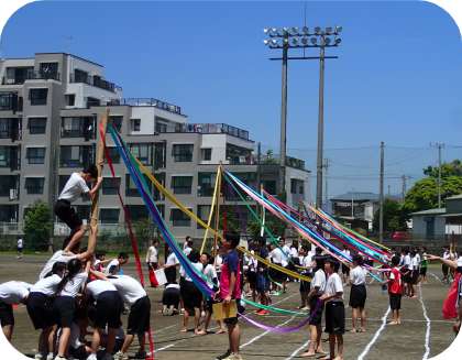 酒匂レインボーの様子です。竹を支えている皆さん、偉いね。