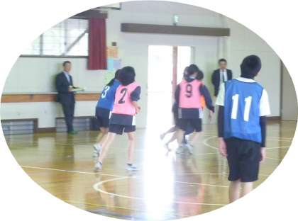 奥津先生が3−5でバスケットボールの研究授業を行いました。かなりハイレベルで、スクリープレーについて説明があり、練習が行われました。さすが専門家です。今回は県西教育事務所の野崎先生が指導に見えられ、授業前の整列や、後片付けまで行き届いていると褒めていました。
