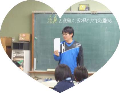 志田先生が1-5で技術科の公開授業を行いました。四つ目切りで下穴を開ける作業です。みんな真剣に作業をしていました。