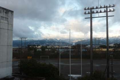 一面銀世界かなと期待してグランドを見に行ったのですが、箱根と丹沢の雪景色がきれいでした。小田原はあったかいですね。