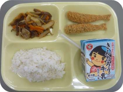 6月11日(月) 今日の給食 公開日 2018/06/11 更新日 2018/06/11 お知らせ 今日のメニューは、いわしのカリカリフライ、こんにゃくの甘辛炒め、麦入りご飯、牛乳です。827kcal。 いいね(0)