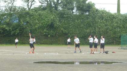 内田先生が1時間目に2−3でソフトボールの授業を公開しました。誰もが声をかけあい、楽しい授業でした。私も1打席打たせていただきました。結果は・・・↘
