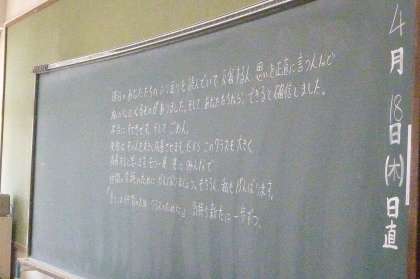 黒板によるメッセージ、廊下のメッセージ、心に響きます。