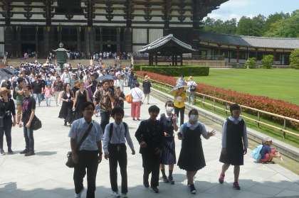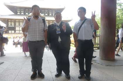 奈良公園、最初の見学は東大寺でした。大仏3兄弟を発見しました。