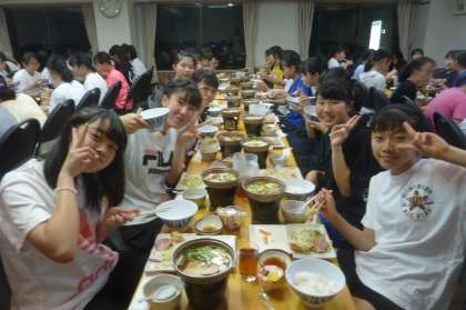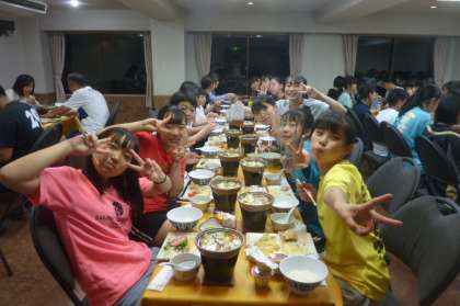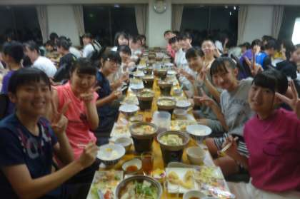 女子の夕飯の様子です。美味しいので会話も弾みます。