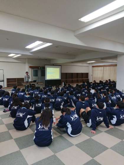 1月23日に1年生対象に喫煙防止講演会を実施しました。喫煙による体への影響など詳しくお話いただきました。生徒は真剣に聞いていました。