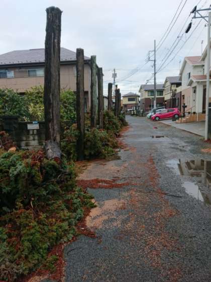 正門から国道1号線に出る道にある杉の木。50年以上前からあるそうで、数年前までは左右にありました。しかし、台風19号で一本根本から折れて、近隣の家の屋根を破壊するなど、木がもろくなっています。そこで、教育委員会の協力のもと、すべて伐採することになりました。少し寂しい気もしますが、これ以上近隣の皆さんに迷惑をおかけするわけにはいきません。卒業生の皆様、御理解ください。