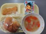 メニューは、牛乳、米粉ロールパン、クリスピーチキン、ABCスープです。今日を除き...