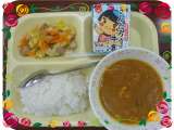今日のメニューは、豆と挽肉のカレー、ウインナーとコーンのソテー、牛乳です。927...