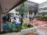 明日のプール清掃に向けて、体育科の先生がゴミをさらったりする、予備清掃をしていま...