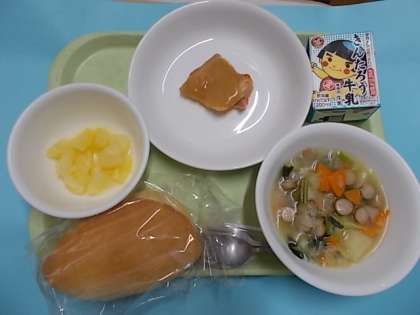 今日のポトフには、人参、玉ねぎ、じゃがいも、キャベツ、小松菜などたくさんの野菜が入っています。特に、じゃがいもには加熱しても壊れにくいビタミンやエネルギー源になる炭水化物が多く含まれます。