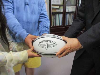 ラグビーボールの寄付