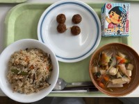 今日の炊き込みご飯は、昨年度、5年生の総合学習から生まれた、かまぼこや地元野菜、小田原産の米を使った地場産物料理です。