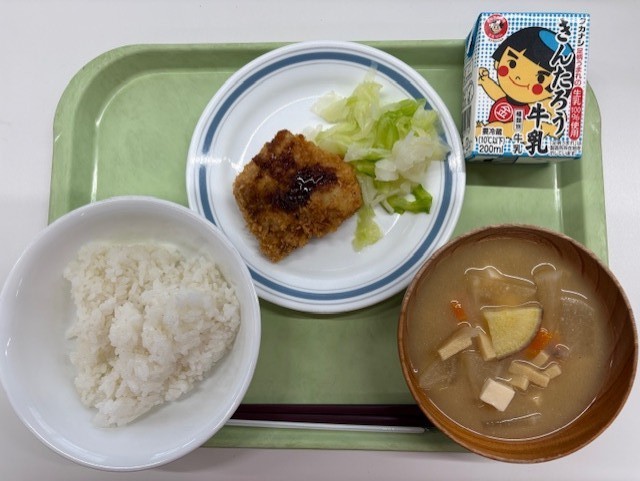 運動会前日の給食は、「豚カツ」で応援する献立の登場です。