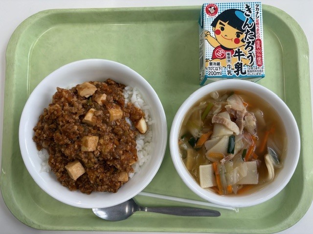 麻婆丼は、豚肉や豆腐、たけのこ、ねぎなど、たくさんの具材が、使われた中華料理の麻婆豆腐をごはんにかけます。