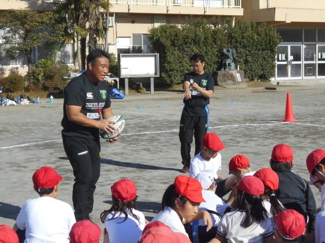 11月28日(金)にアスリート派遣事業として三菱重工相模原ダイナボーズから講師の先生をお迎えしてタグラグビーの体験教室を行いました。
