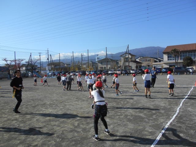 試技として見せてくださった校舎の3階まで届くかというハイパントキックに子どもたちは大きな歓声を上げたり、実際にタグをつけてのゲームを行ったりと45分間はあっという間に過ぎていきました。