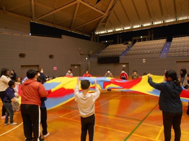 午前中は、4チームに分かれて、ボッチャを数試合、午後はバルーンやじゃんけん列車をしました。