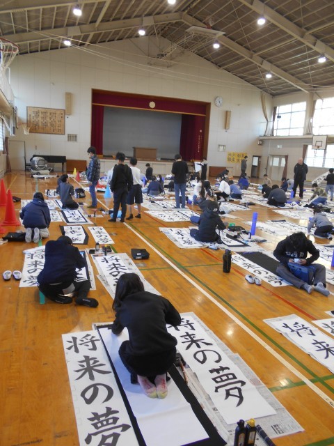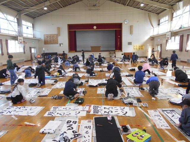 どの学年も条幅の用紙に大きな文字で堂々と書くことができていました。