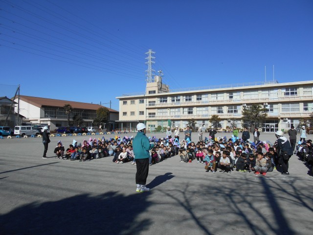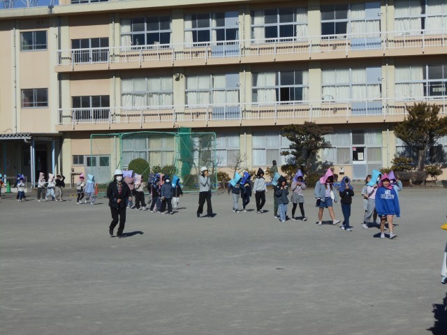 休み時間の発生想定だったので、運動場にいたり、廊下にいたり、近くに大人がいない状況だったりとそれぞれの子どもが判断して避難しなくてはいけない訓練にしてみました。