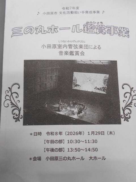 1月29日(木)に4年生は、三の丸ホールで行われた小田原室内管弦楽団さんによる音楽鑑賞会に行ってきました。