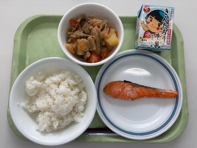 ご飯 肉じゃが 鮭の塩焼き 牛乳