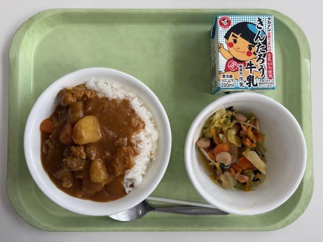ポークカレーライス (ご飯) 野菜炒め 牛乳