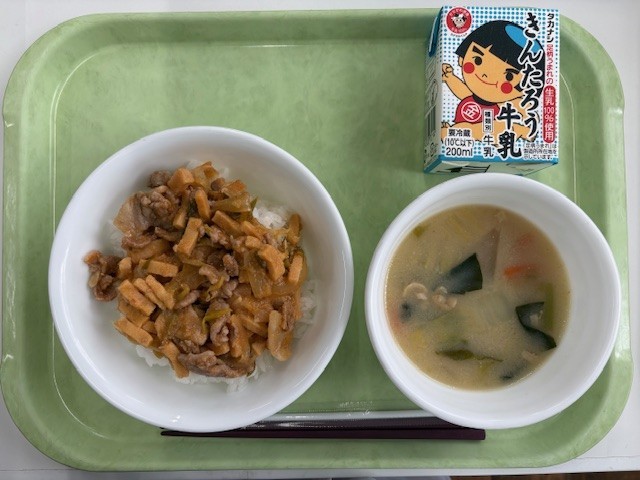 焼き肉丼 (ご飯) チゲ汁 牛乳