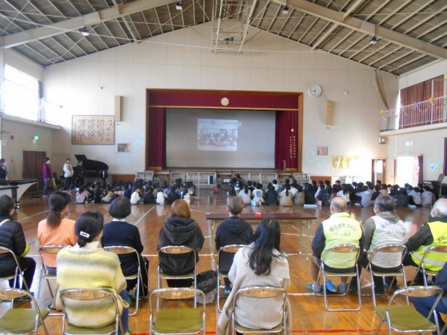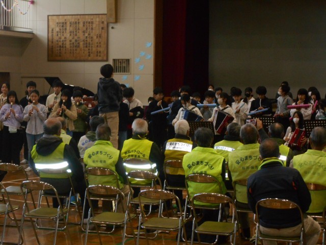 日頃、お世話になっているボランティアさんに全校児童からのビデオメッセージと1年生、6年生は直接体育館で感謝の歌と合奏を披露しました。