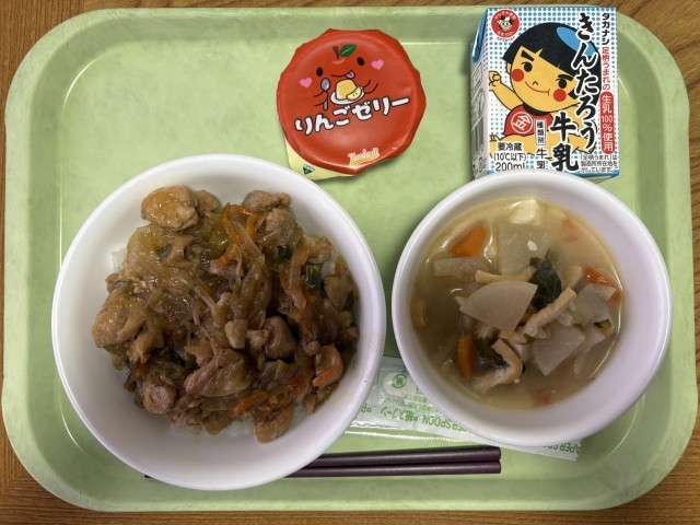 焼き鳥丼  みそ汁  牛乳  りんごゼリー