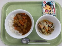 ポークカレーライス 野菜ソテー 牛乳 給食にほぼ毎日つく牛乳に多...