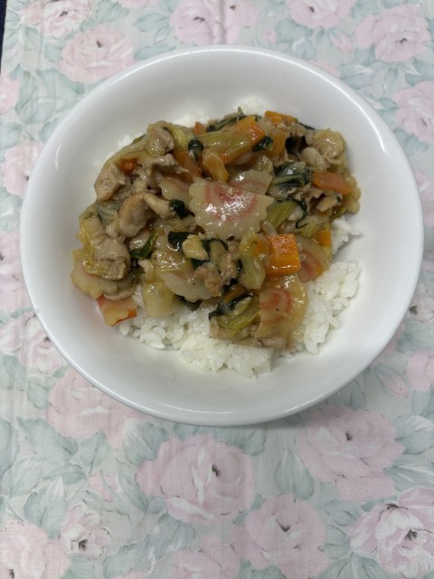 【今日の献立】 中華丼 春巻き 牛乳