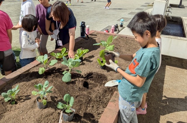 わくわく・もりあげ畑に新しい野菜の種や苗を植えました。