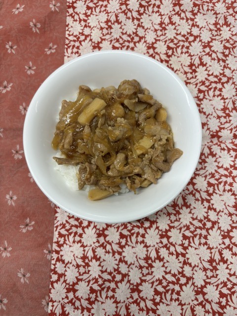 【今日の献立】 豚肉丼 すまし汁 牛乳