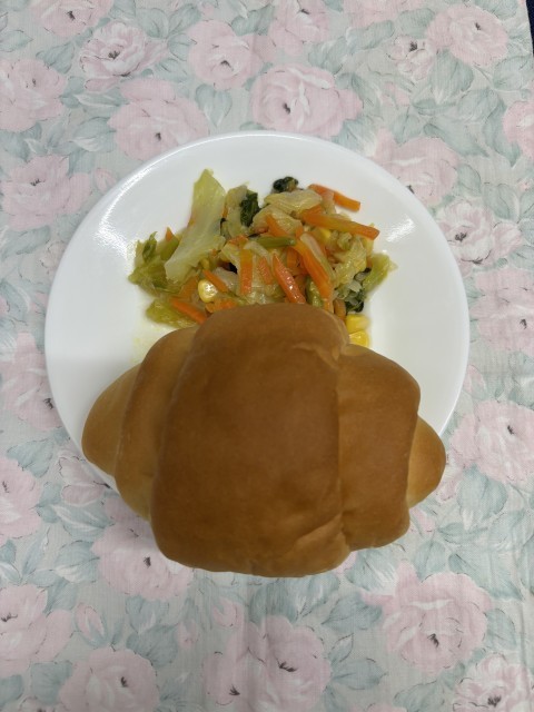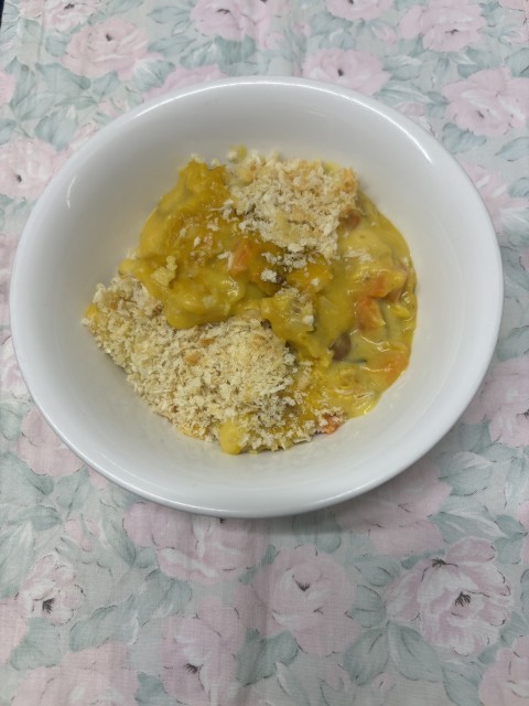 【今日の献立】 かぼちゃのグラタン カラフルソテー ロールパン 牛乳