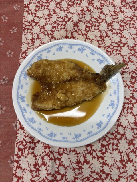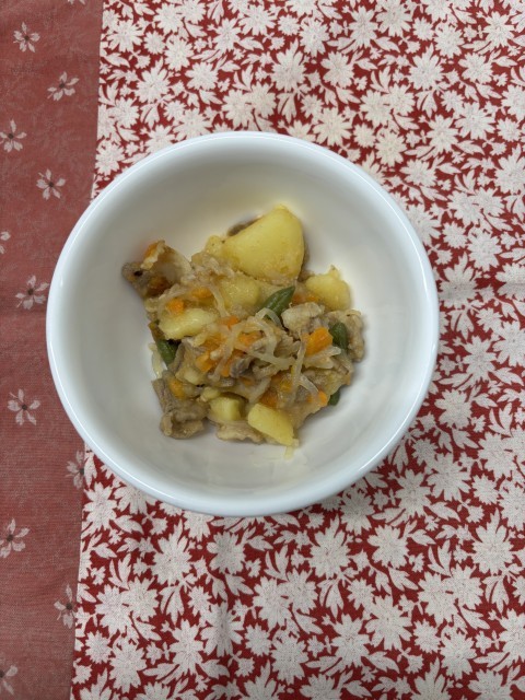 【今日の献立】 ごはん かますの蒲焼き 塩肉じゃが 牛乳