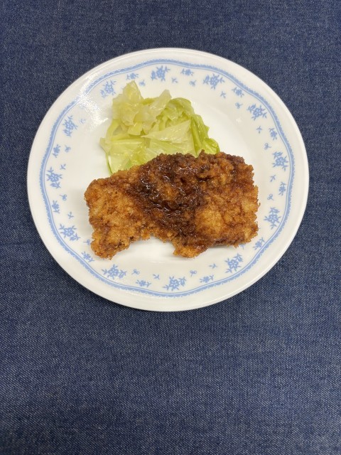 【今日の献立】 とんかつ ご飯 キャベツ炒め 具沢山のすまし汁