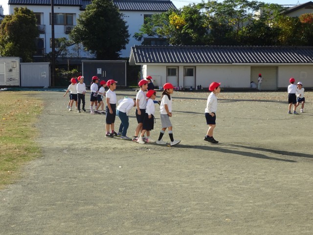 体育の学習で「リレー遊び」「えいご道」を身体いっぱい動かしながら楽しんでいました。